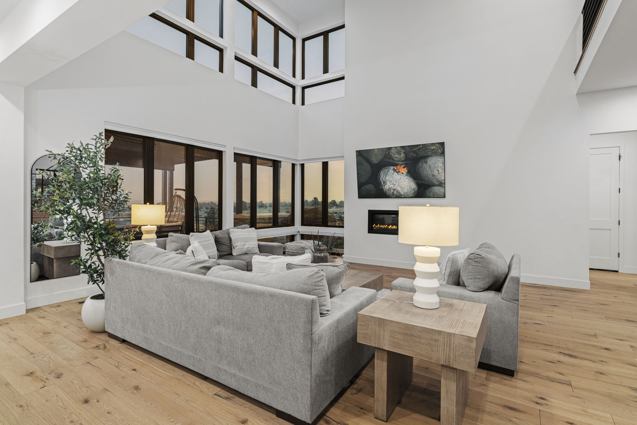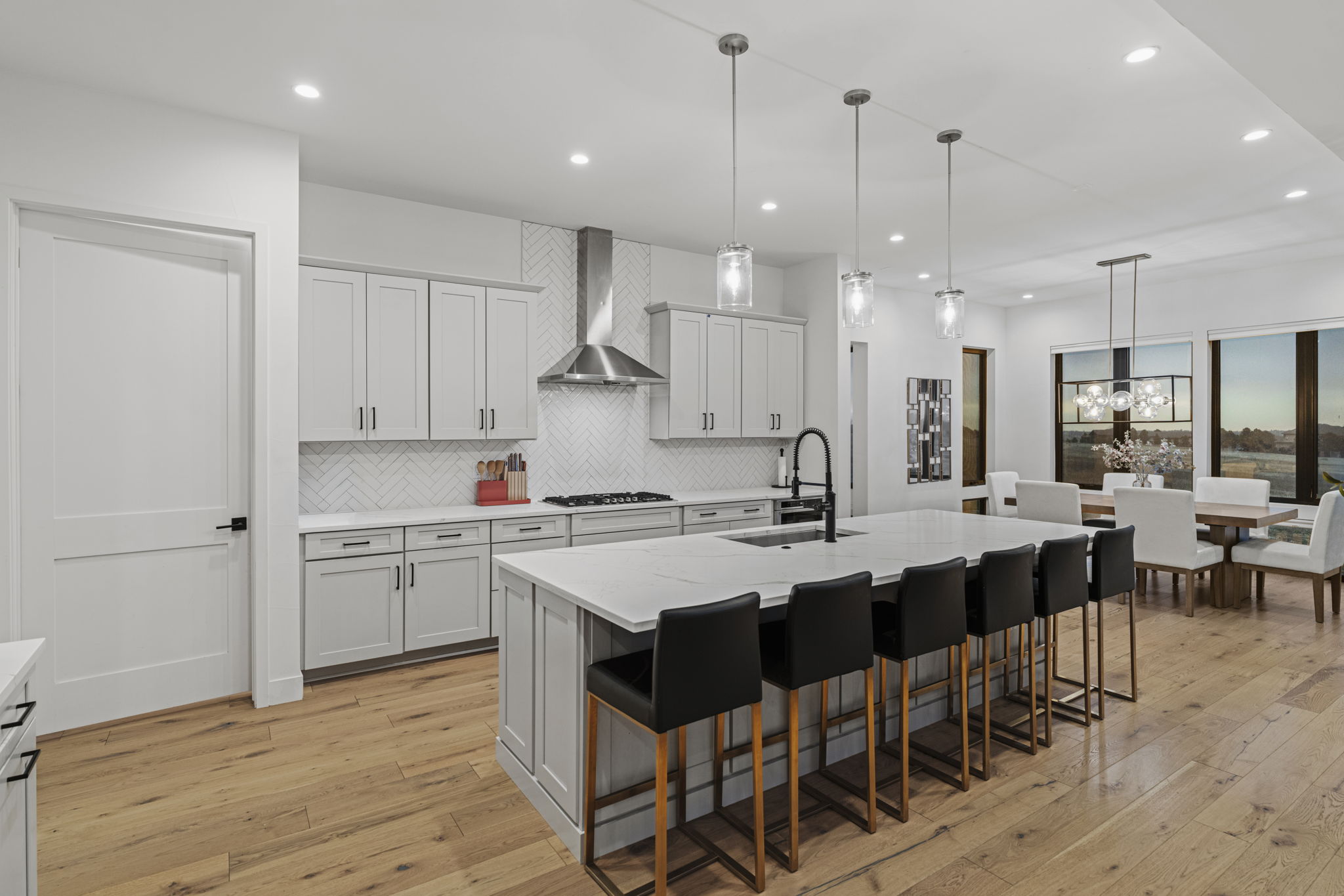Meticulously maintained two-story modern farmhouse on a quiet cul-de-sac in one of Parker’s most desirable neighborhoods, set on a sprawling 1.5-acre lot backing to open space with beautiful mountain views. Designed by award-winning Joyce Homes, this residence blends modern luxury with sustainable living and features floor-to-ceiling windows, sliding glass panel doors, and seamless indoor/outdoor flow to an expansive covered deck. The gourmet kitchen is equipped with stainless steel appliances, quartz countertops, custom cabinetry, and a full scullery kitchen ideal for prep and entertaining. A main-floor guest suite with private bath adjoins a convenient home office, creating a highly functional multigenerational layout. The upper level offers a generous owner’s suite with private balcony, freestanding spa tub, multi-head walk-in shower, and ample closet space.